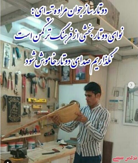 ترکمن سسی - هنرمند جوان سازنده دوتار می گوید: موسیقی سنتی و نوای دوتار بخشی از فرهنگ ترکمنی است و همه کمک بکنیم تا صدای دوتار خاموش نشود.