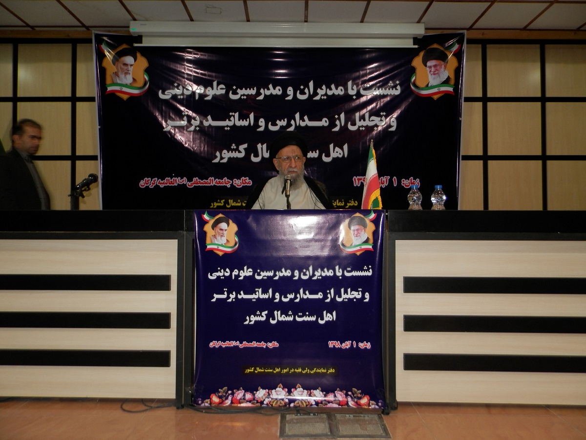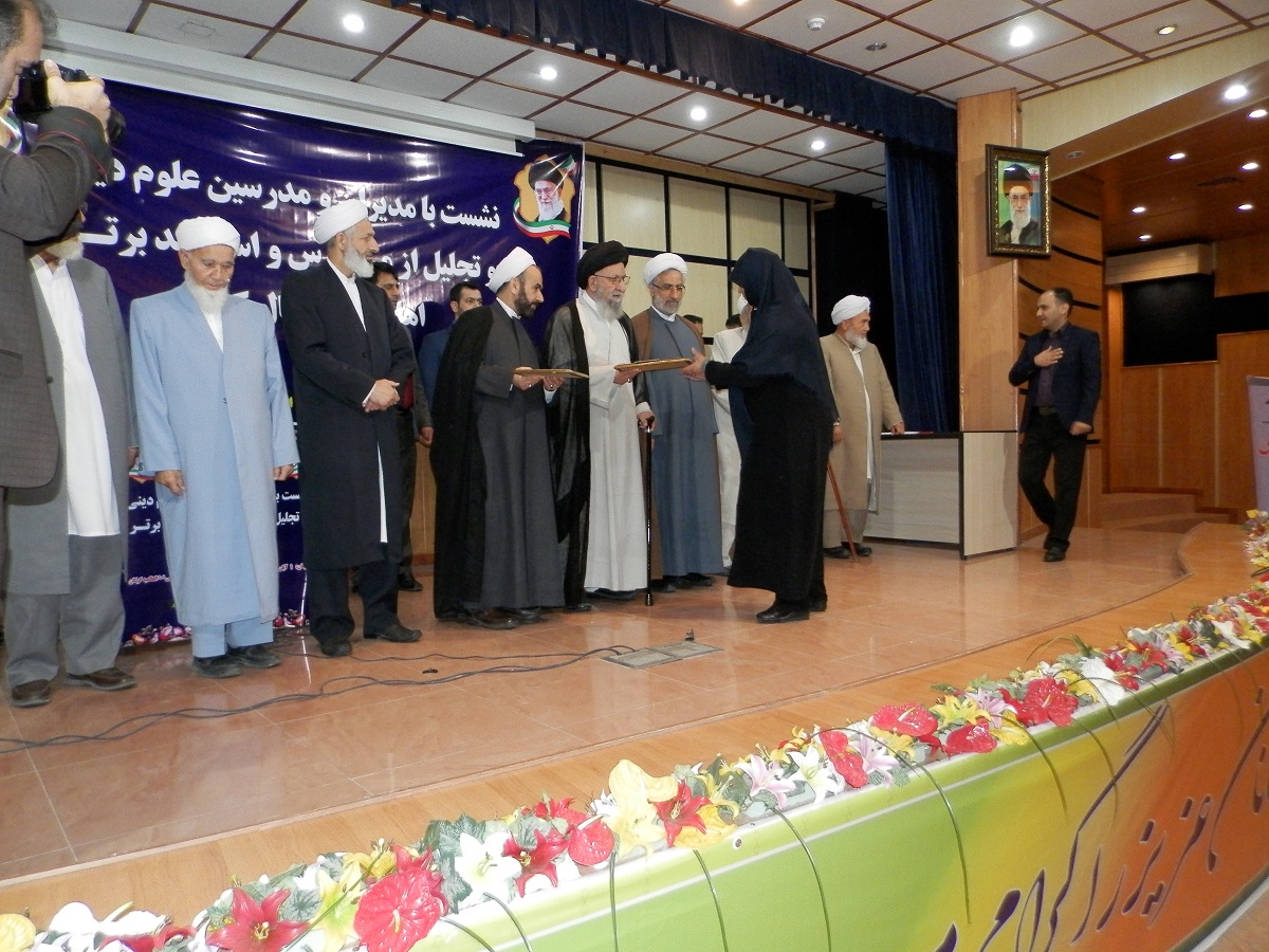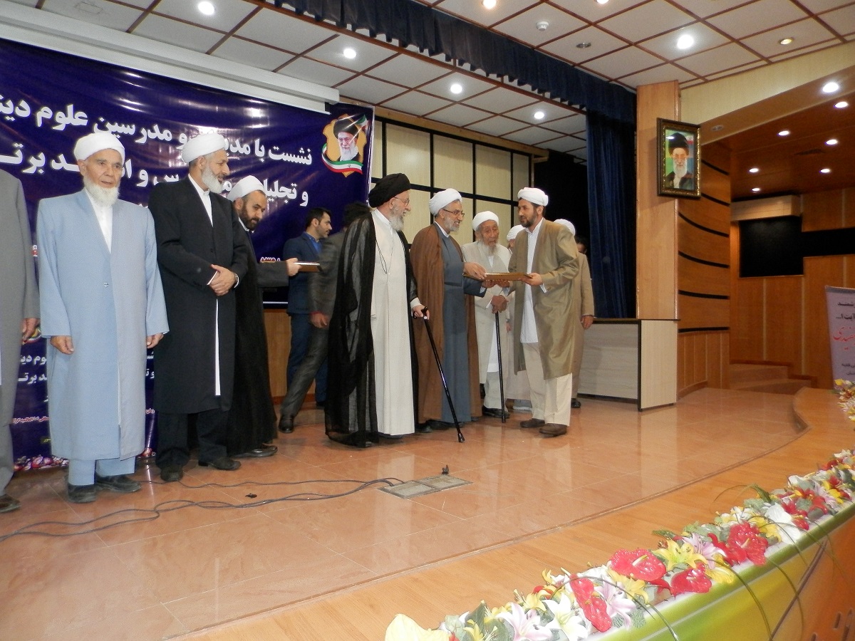 همچنین از آخوند نور نیاز نبوی نژاد مدرس مدرسه علوم دینی نعمانی گمیشان، آخوند ابوبکر خوجملی مدرس مدرسه علوم دینی محمدیه نگین شهر، آخوند عبدالجبار میرابی مدرس مدرسه علوم دینی حامد قره تپه، آخوند اسماعیل قدیری مدرس مدرسه علوم دینی ربانیه چنارلی، آخوند عبدالرحمان پقه مدرس مدرسه علوم دینی احمدیه چن سبلی، آخوند نیاز قلیچ حنفی مدرس مدرسه علوم دینی نور بناور، مولوی نعمت اله کاشانی (مشعوف) مدرس مدرسه علوم دینی اهل سنت گالیکش، آخوند احمد قربانپور مدرس مدرسه علوم دینی خاتم الانبیاء شهر فراغی، خانم آی جمال قورچایی مدرس مدرسه علوم دینی مکتب الزهراء قورچای و اشرف حبیب زاده مریان مدرس مدرسه علوم دینی محمدیه تالش گیلان، به عنوان مدیران برتر مدارس، تقدیر و تجلیل به عمل آمد.