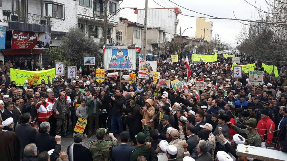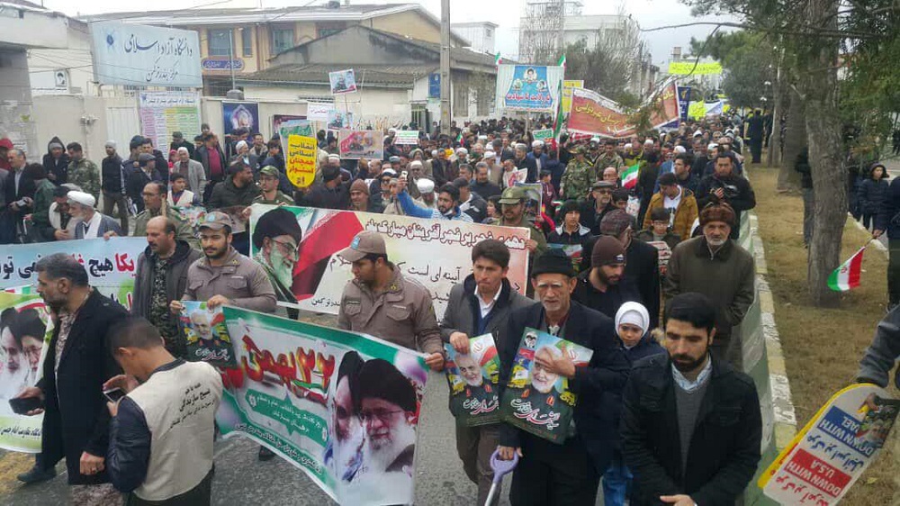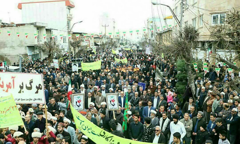 ترکمن سسی - همزمان با چهل و یکمین سالگرد پیروزی انقلاب اسلامی، راهپیمایی مردم گلستان برای اثبات وفاداری به انقلاب و گرامیداشت ۲۲ بهمن در هوای ابری و بارانی با حضور انبوه و پرشور مردم در شهرای مختلف استان برگزار شد.