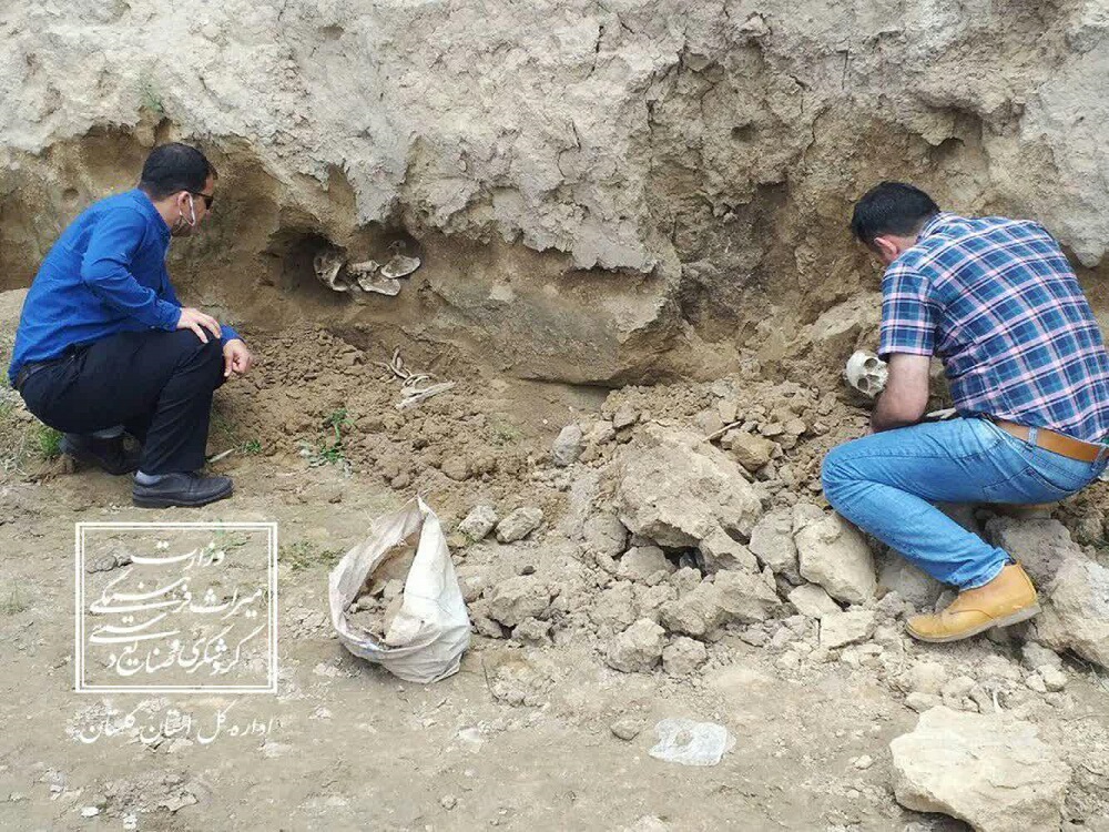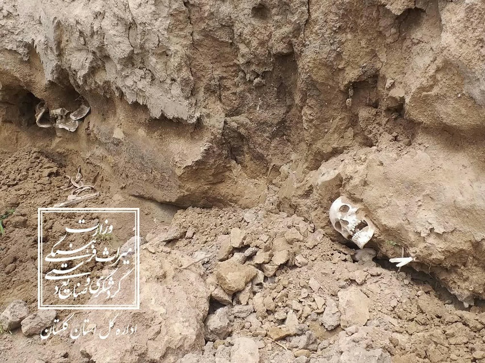 با توجه به بارندگیهای اخیر و فرسایش خاک دیوار و ریزش آن در چند روز اخیر، بقایای دو اسکلت انسانی پدیدار شده است.