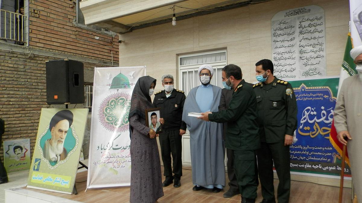 گمیش تپه - در یادواره شهدای خدمت و اهل سنت گلستان که قبل از ظهر چهارشنبه ۷ آبان‌ماه ۹۹ در دارالقرآن عاصمی گمیش تپه برگزار شد از خانواده شهید خدمت نازمحمد خالدی تجلیل شد.