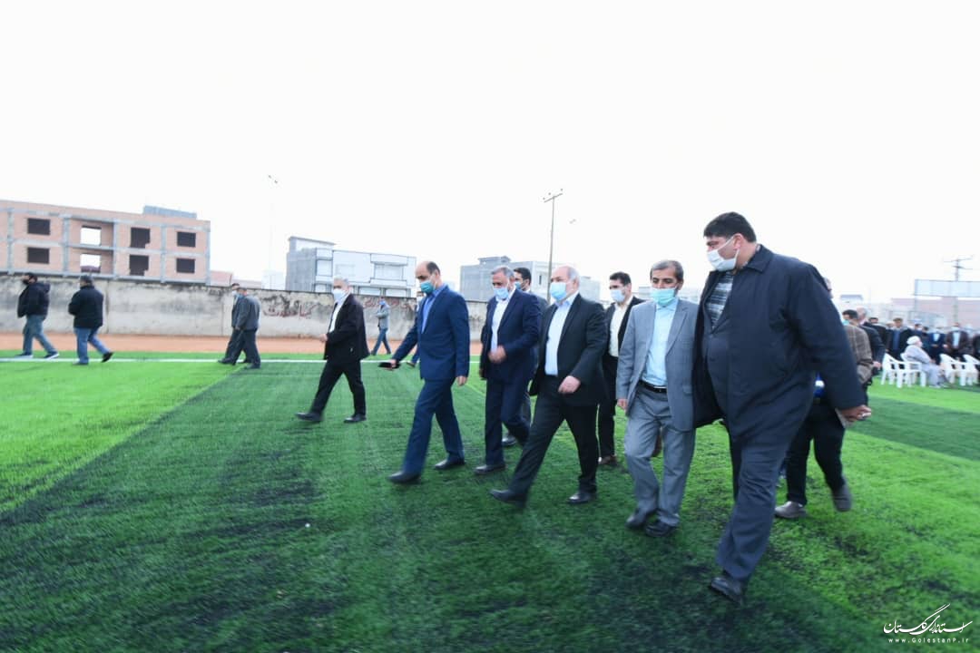 سپس، چمن مصنوعی شهرستان آق قلا با اعتبار ۴۰ میلیارد ریال از محل اعتبارات استانی افتتاح شد.