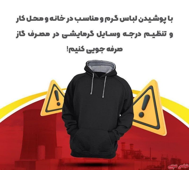 با پوشیدن لباس گرم و مناسب در خانه و محل کار و تنظیم درجه وسایل گرمایشی در مصرف گاز صرفه جویی کنیم.