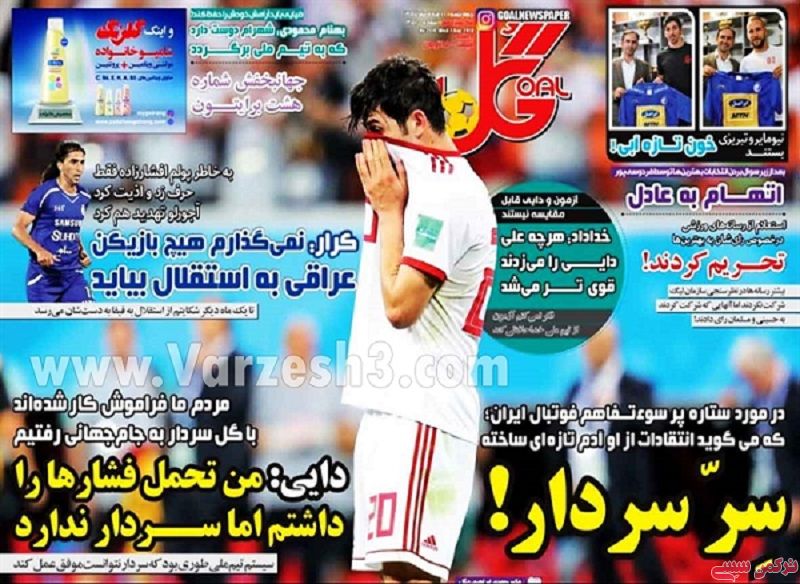 ترکمن سسی- روزنامه ورزشی گل با تیتر "سر سردار" به موضوع سردار آزمون پرداخته و با گفتگو با بزرگان فوتبال ایران در دهه های پیشین درباره این بازیکن ،نظرات انها را منتشر کرده است.