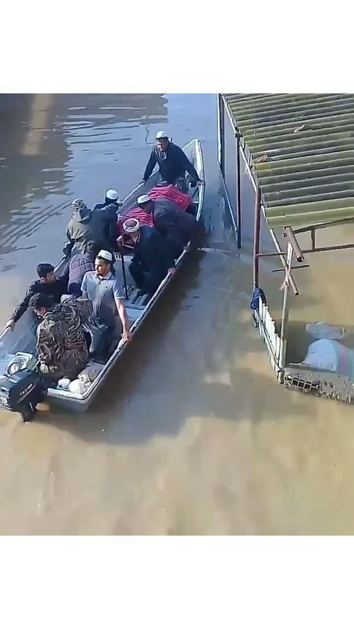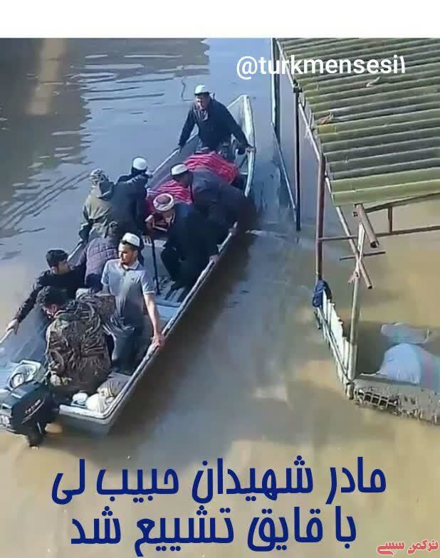 ترکمن سسی - تصاویر تشییع مادر دو شهید در آق قلا با قایق در سیل